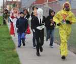 Students from Hacker Middle School complete their first lap around the school complex during a yearly walk-a-thon on Friday. In the spirit of the Halloween holiday, many of the students dressed up as their favorite hero or villain to help raise money for their school. ... -