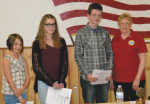 Carmen Metzer from American Legion Auxiliary Unit 26 poses for a photo with the winners of this year's Legion Auxiliary contests. Dominic Perkins and Allie Reed were honored for their award-winning entries during this year's Americanism essay contest while Amelia Buckner was recognized for her winning creation during this year's poppy poster contest... -