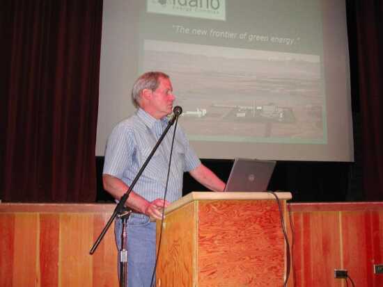 The purpose of this meeting was to explain the company's plans for the 4,000 acre site that lies between the Snake and Bruneau Rivers just south of Bruneau, and to field questions from Owyhee County residents.