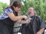 Meanwhile, Harold Booth fulfilled a pledge that afternoon on behalf of his wife, Tammy. He agreed to have his hallmark beard shaved off -- along with his hair -- as part of this year's cancer awareness effort.