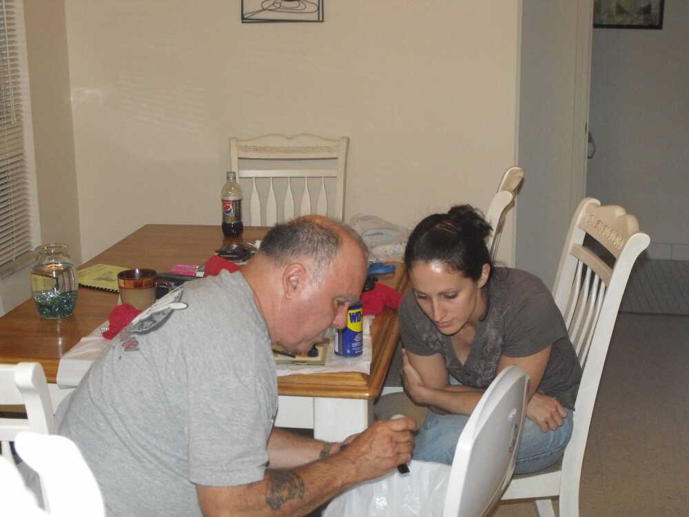 Dad and his babygirl cleaning guns back at Wright-Patt Air Force base