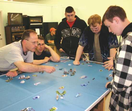 At a recent "Pirates" tournament, where players "sail" 3-D replicas of 18th-century warships on a table-top "ocean" complete with islands (and the occasional sea monster), Brian Orban was helping a half dozen young adults, teens and pre-teens learn the mechanics of the game.