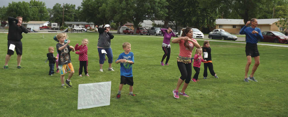 Children and adults follow the directions of the instructors from Bailando Fitness as they participate in a free class during a community field day held Saturday at St. Luke's Elmore Medical Center. The local hospital hosted the inaugural event to encourage people to get active and live healthier.