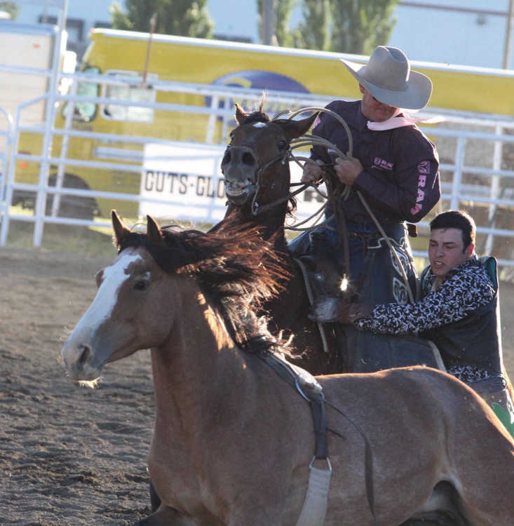 To qualify for a share of the cash prizes at this year’s rodeo, cowboys had to hang on until the horn went off while the broncs did everything they could to throw the riders. Once the ride ended, competitors needed a hand to dismount from their raging horse or bull versus the possibility of being unceremoniously flung out of the saddle.