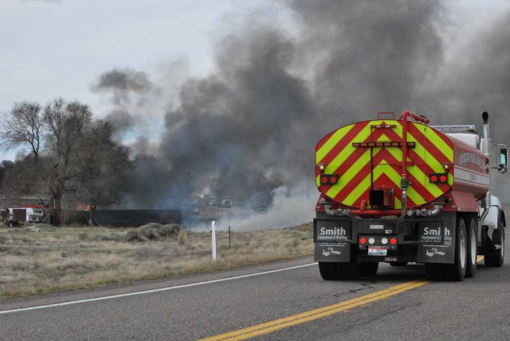 4.11.23 -12pm- The MHAFB Fire Dept. is actively responding to a residential fire on Bradbury St. near the main gate of the Air Force Base. The fire has largely encompassed two residences on the same property, and is being egged on by the wind and stored ammunition which can be heard popping and booming in the blaze...