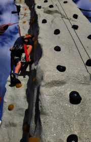 Holden Severy makes his way up a climbing wall as he takes part in the You Are More Fall Festival on Friday. The climbing wall provided children, teens and adults a chance to test their athletic abilities in addition to helping them find the best route to scale that wall.