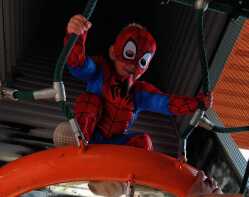 With his father waiting below, Weston Populo pauses to take a look at the area at the bottom of the climbing tower in the Hub Plaza as the youngster takes part in Friday’s Spooktacular event.